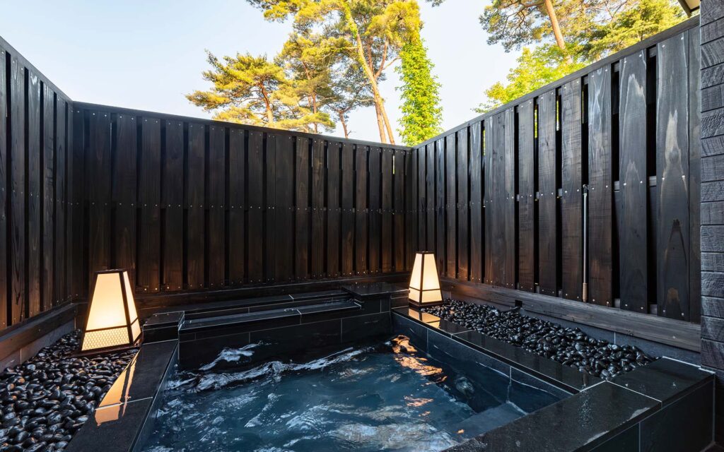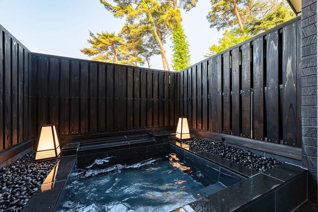 専用の露天風呂で、森の風を感じながらひと息。贅沢な”ひとり時間”。