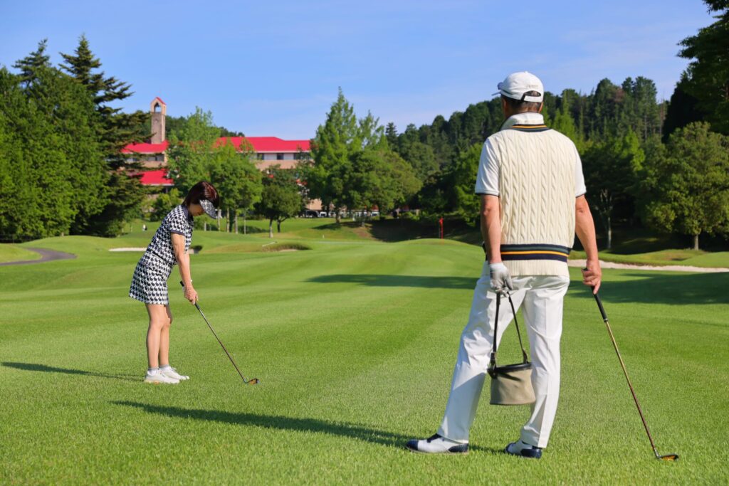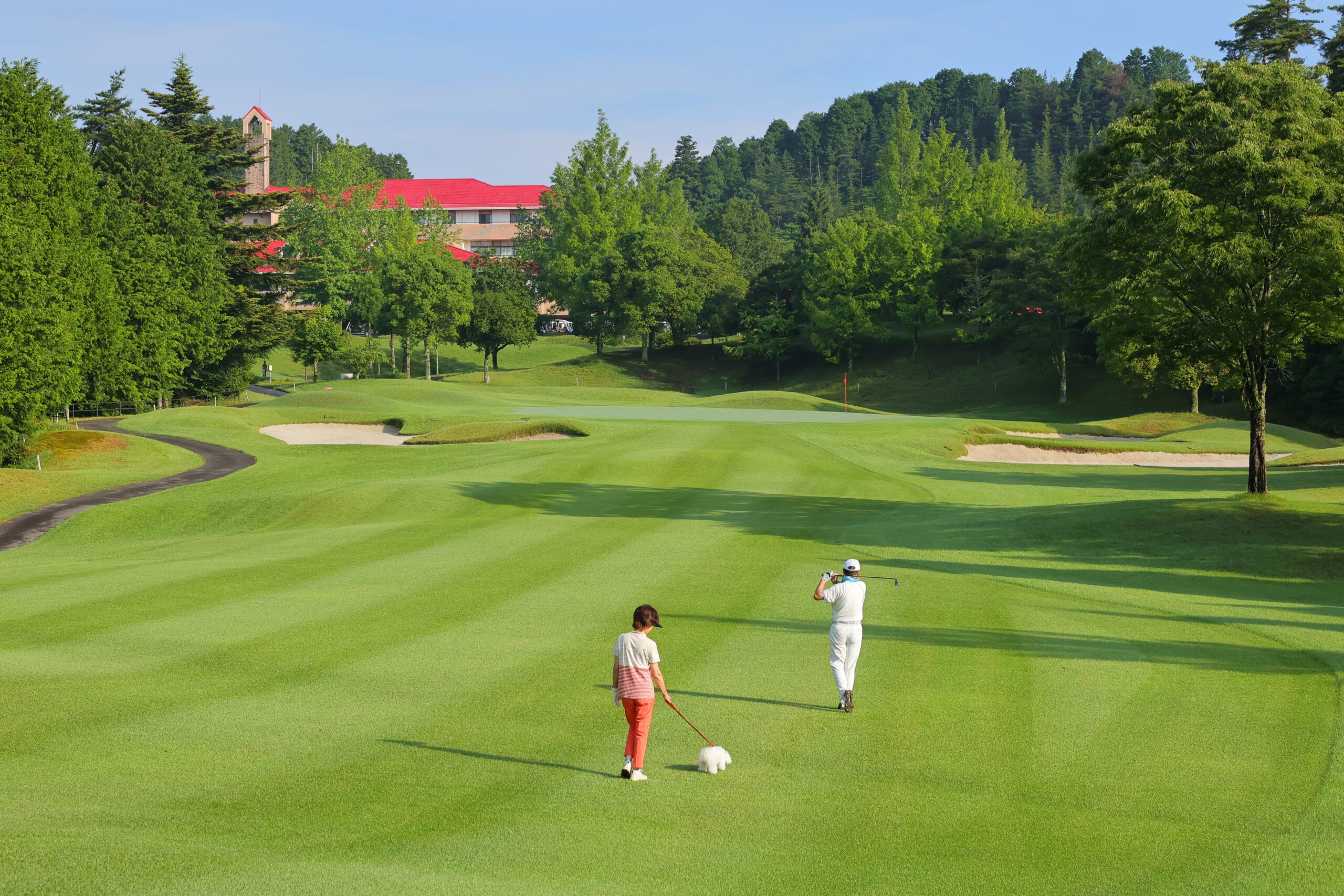 高原の風を感じながら、ゆったりプレイ。2人だけの時間を満喫。